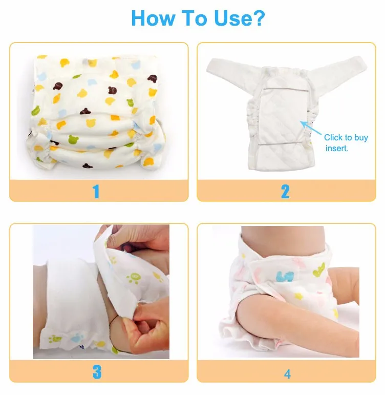 Первый представляет собой отрез марли в виде квадрата или треугольный, который, как и фабричные памперсы заворачивают между ножек ребенка. Многоразовый изготавливается из ткани, более плотной по своему составу, из натурального хлопчатобумажного материала. Внутрь трусиков вкладывают сменные пеленки из марли. Подобные модели стирают пару раз в день, а одноразовый необходимо стирать сразу же после однократного использования.