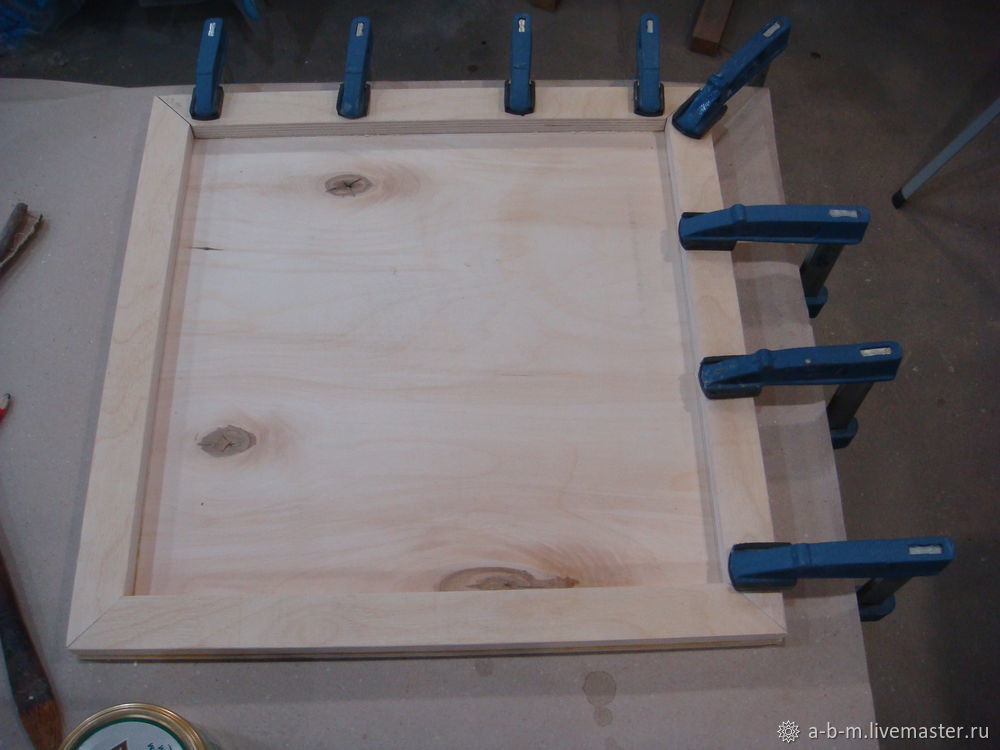 Сначала необходимо подготовить поверхность. Укрепить по периметру брусом, тщательно зашкуривая все края. По краям доски можно сделать окошки в виде домиков.
