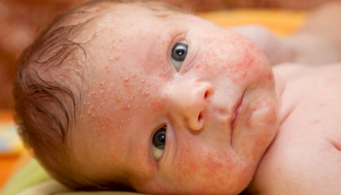 ΠΠ»Π°Π²Π½ΡΠ΅ ΠΏΡΠΈΠ·Π½Π°ΠΊΠΈ Π°Π»Π»Π΅ΡΠ³ΠΈΠΈ β ΠΌΠ΅Π»ΠΊΠΈΠ΅ ΠΊΡΠ°ΡΠ½ΡΠ΅ ΠΏΡΡΡΠΈΠΊΠΈ Π½Π° Π»ΠΈΡΠ΅ ΠΈ ΡΠ΅Π»Π΅ Ρ Π½ΠΎΠ²ΠΎΡΠΎΠΆΠ΄Π΅Π½Π½ΠΎΠ³ΠΎ Π½Π° ΡΠΎΠ½Π΅ ΠΊΡΠ°ΡΠ½ΡΡ